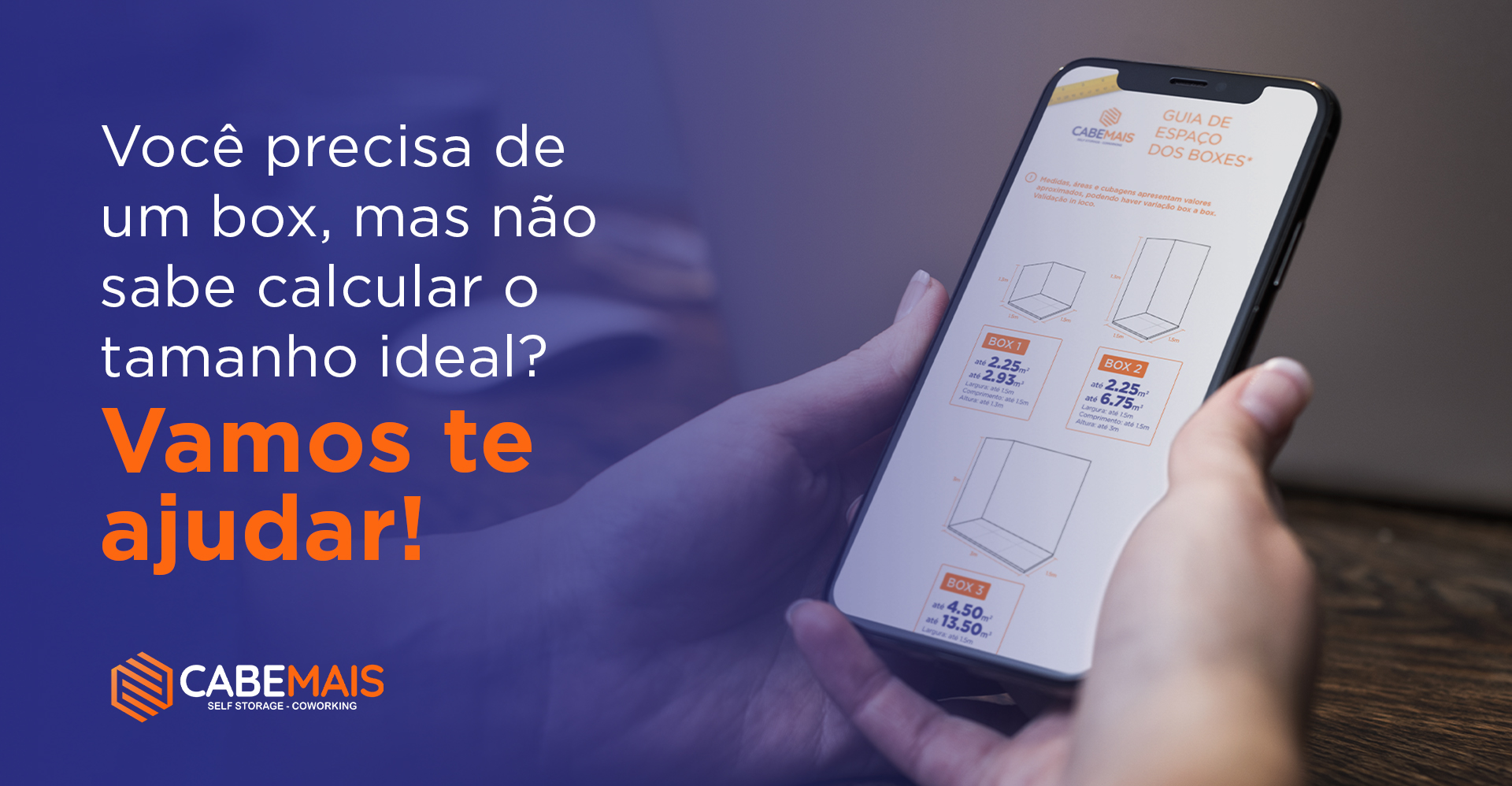 O Cabe Mais trabalha com oito tipos de boxes, cada um deles com diferentes tamanhos para servir a todas as necessidades. Se diante das opções você está com dúvidas sobre qual tamanho atende melhor ao que você precisa, esse post é para você! Preparamos dicas valiosas para determinar o box ideal para guardar tudo o que você precisa, afinal, aqui cabe sempre mais!
